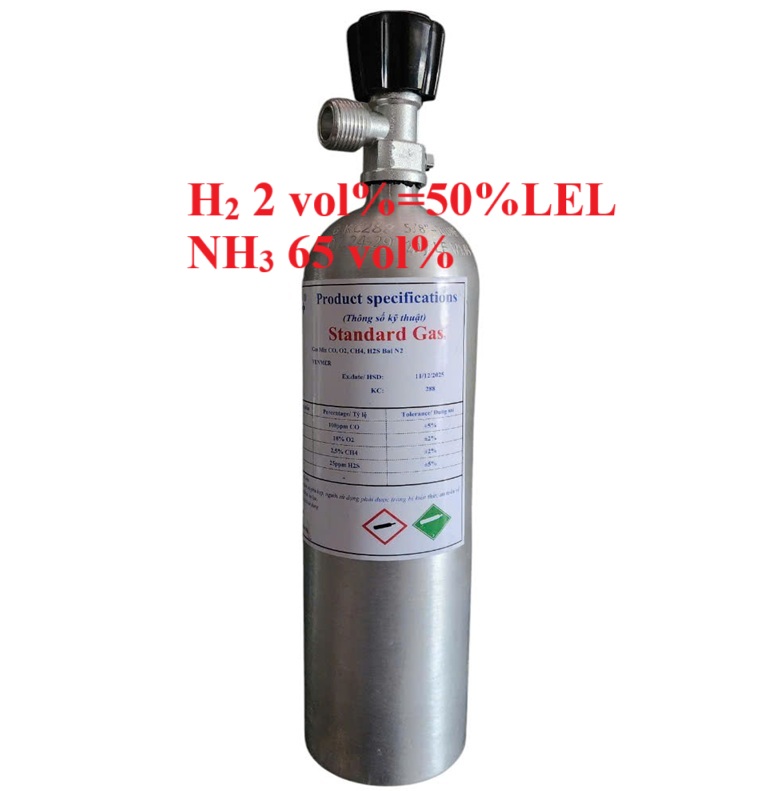 Chai khí H2 Hydro 50 % LEL NH3 55 vol %