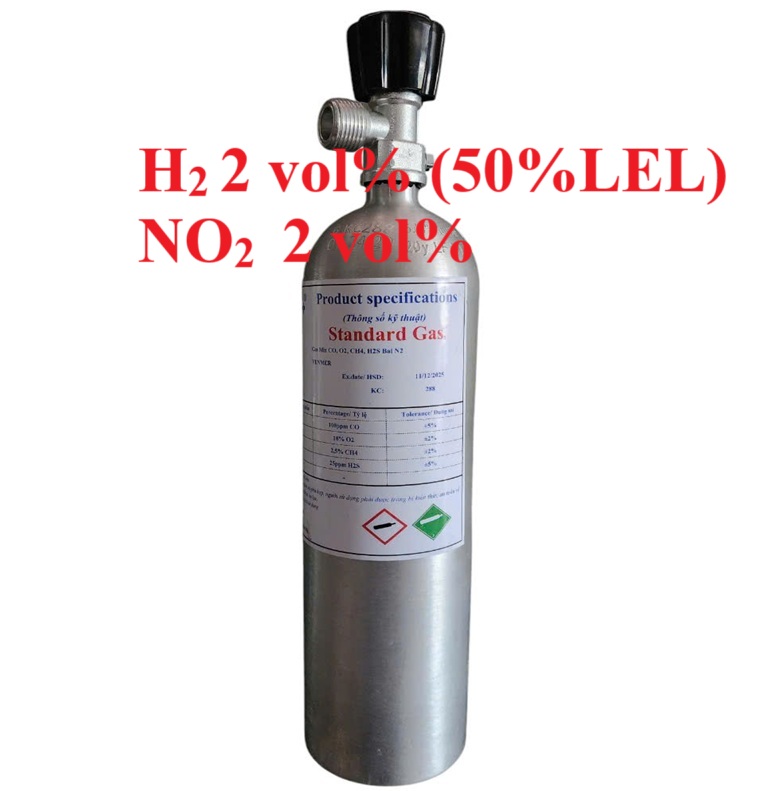 Chai khí H2 Hydro 50 % LEL NO2 2 vol % hiệu chuẩn