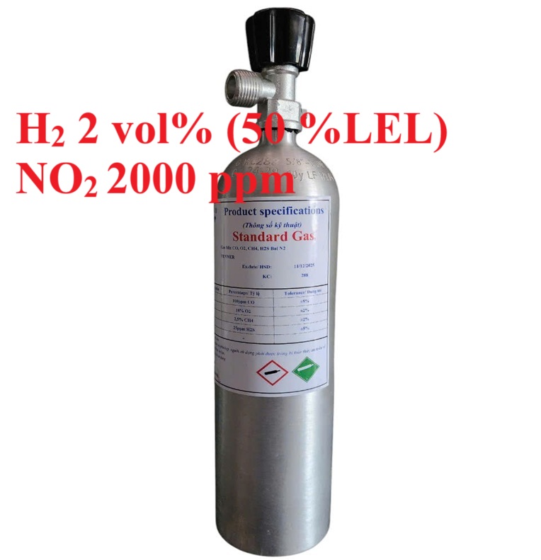 Chai khí H2 Hydro 50 % LEL NO2 2000 ppm