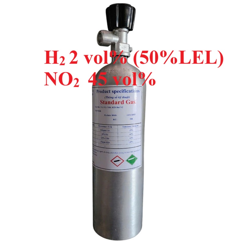 Chai khí H2 Hydro 50 % LEL NO2 45 vol % hiệu chuẩn