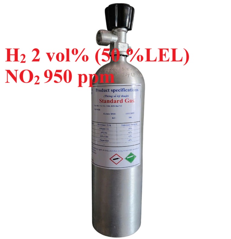 1. Chai khí H2 Hydro 50 % LEL NO2 950 ppm hiệu chuẩn