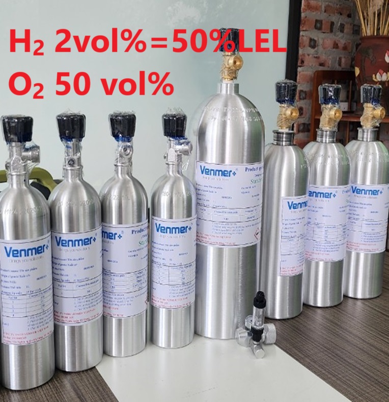 1. Chai khí H2 Hydro 50 % LEL O2 50 vol % hiệu chuẩn