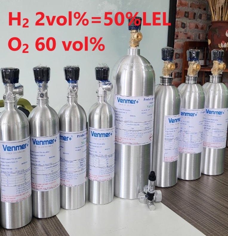 Chai khí H2 Hydro 50 % LEL O2 60 vol % hiệu chuẩn là chai chứa hỗn hợp khí Hidro Hydrogen và khí Oxy Oxygen, vì vậy cần có thiết bị giám sát rò rỉ khí phù hợp dò khí rò rỉ khí H2 và khí Oxi.
