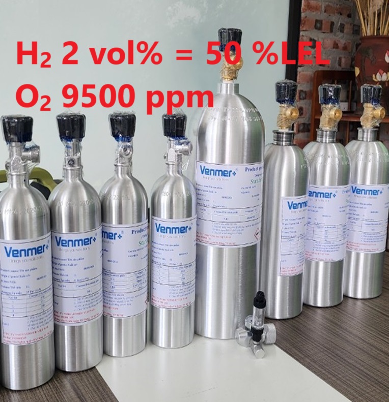 1. Chai khí H2 Hydro 50 % LEL O2 9500 ppm hiệu chuẩn
