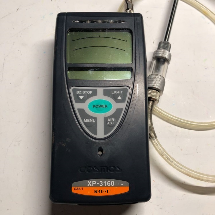 Máy đo khí gas nén lạnh R407C XP-3160 Cosmos là thiết bị đo kiểm tra phát hiện rò rỉ khí gas dùng trong các loại máy lạnh thoát ra ngoài trong không khí.